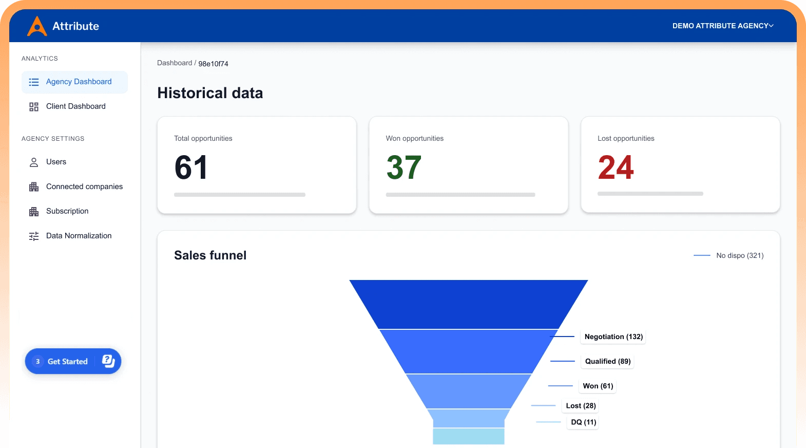 Attribute connects your campaigns directly to your client's CRM forseamless data flow.